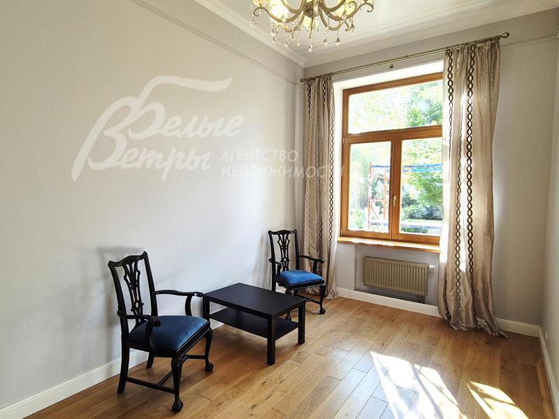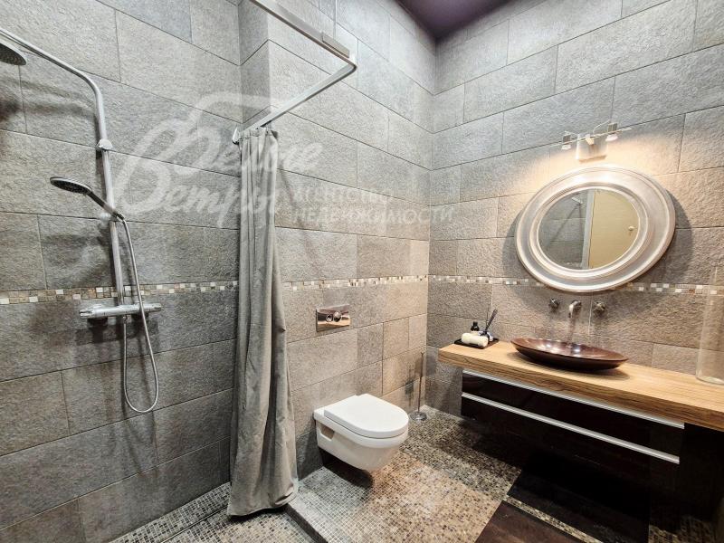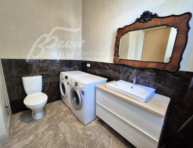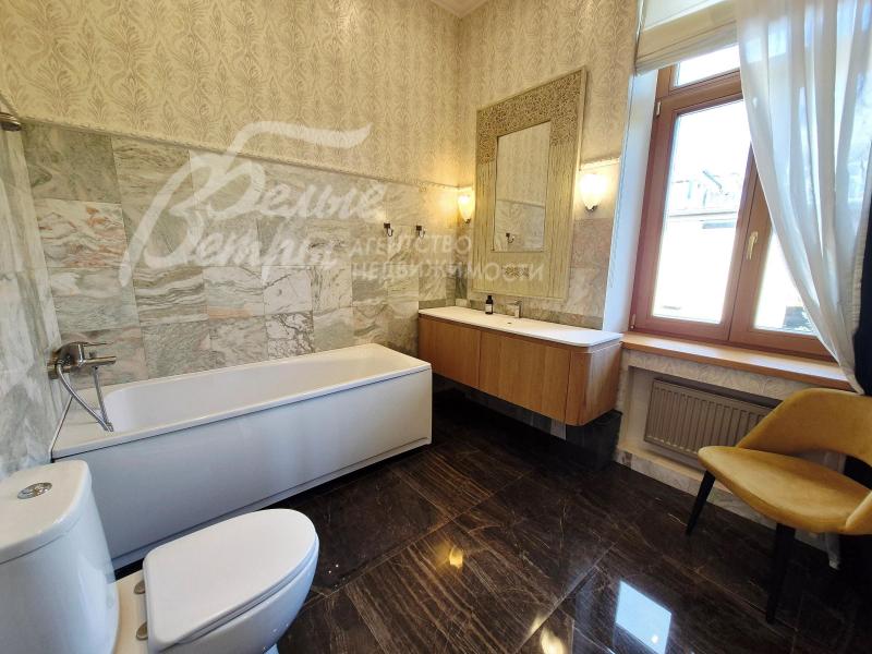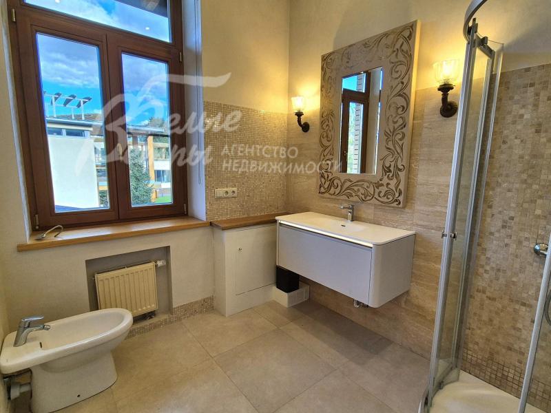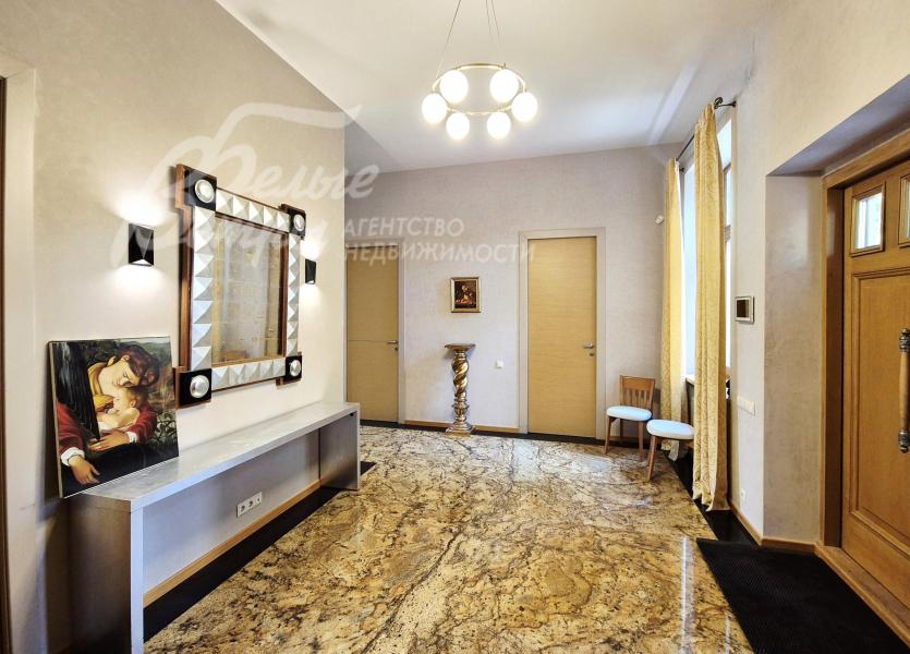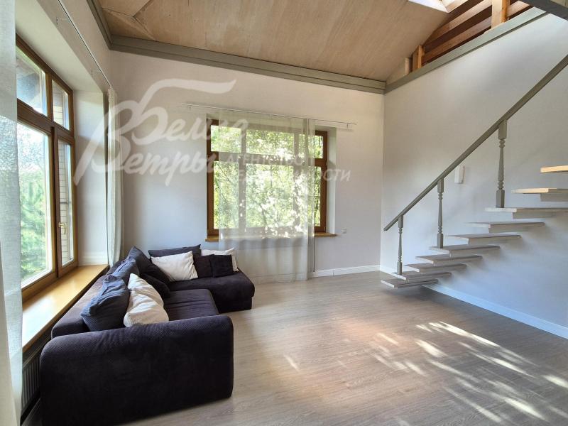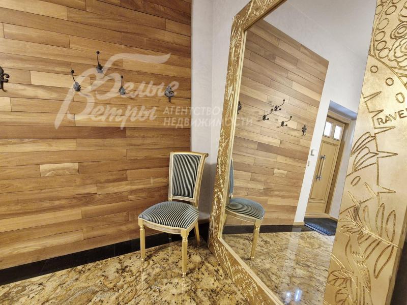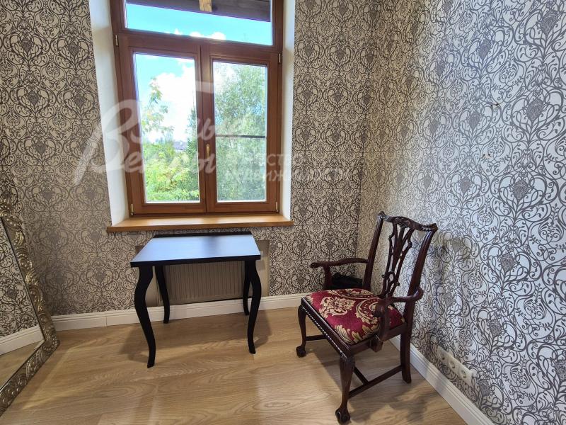 Мебель: в столовой обеденная группа на 6 персон, в гостиной новый мягкий гарнитур, в спальнях современные двуспальные кровати, тумбы, комоды, журнальные столики, гардеробные оборудованы системами хранения. Межкомнатные двери производства Италия. В прихожей настенное зеркало от немецкого бренда Rolf Benz, эксклюзивное напольное зеркало Ravel (Италия). В главной спальне люстра и бра ручной работы. В гостиной люстра от бренда "Русский модерн", светильники Flos Италия.