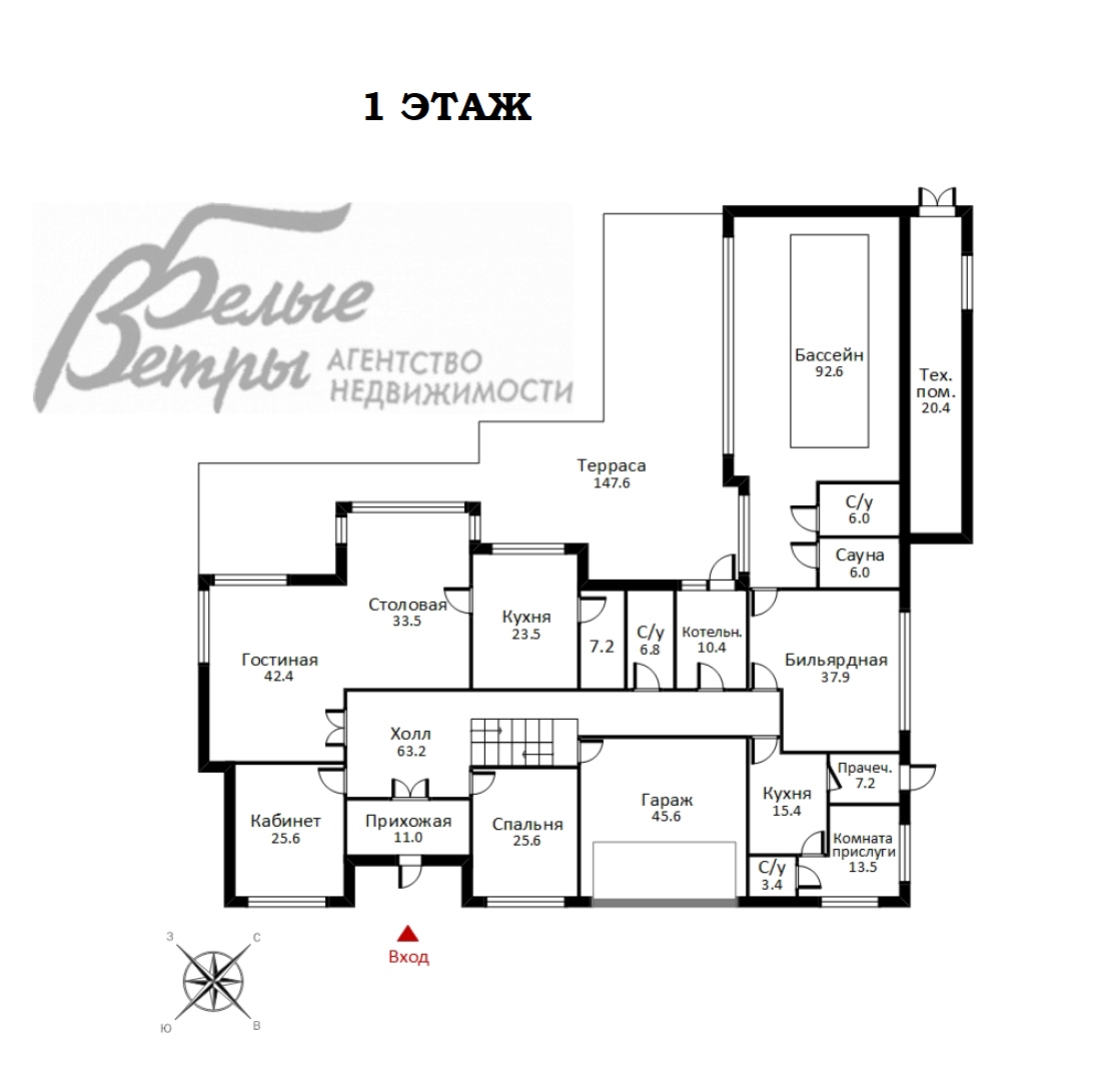 Опции: бассейн; сауна; квартира для персонала; терраса; бильярдная.