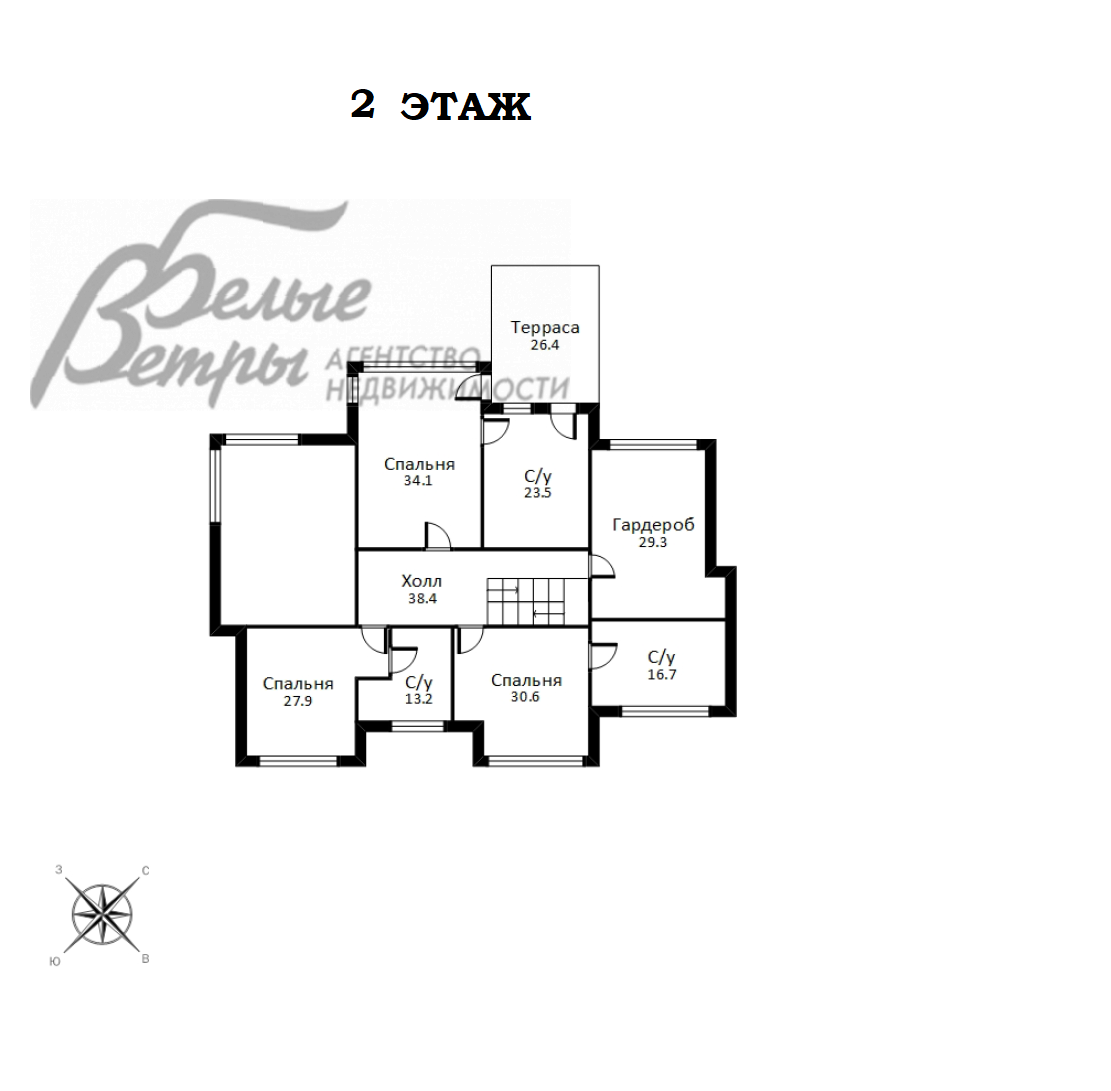 2-ой этаж: галерея второго света, мастер-спальня и санузлом и выходом на балкон, две детские спальни со своими санузлами, большая гардеробная комната.